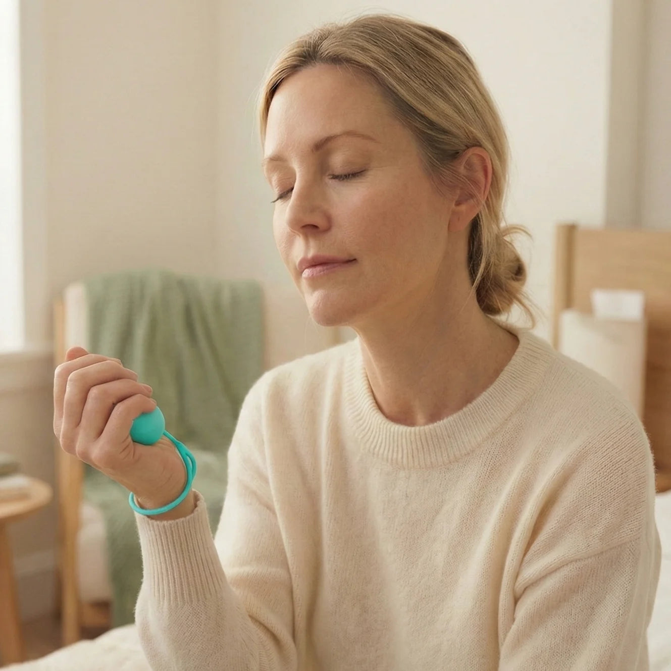 Utilisant la thérapie par micro-courants, CalmWave™ active le point d'acupression PC8 de votre main, reconnu scientifiquement pour son efficacité contre l'anxiété et l'insomnie.